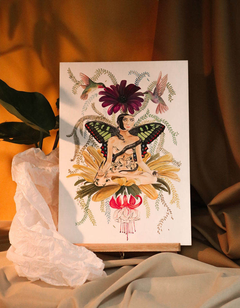 A kundhalini (serpente) em atividade causa harmonia em todos os meus processos de metamorfose internos e externos, representados pelas asas de borboleta.